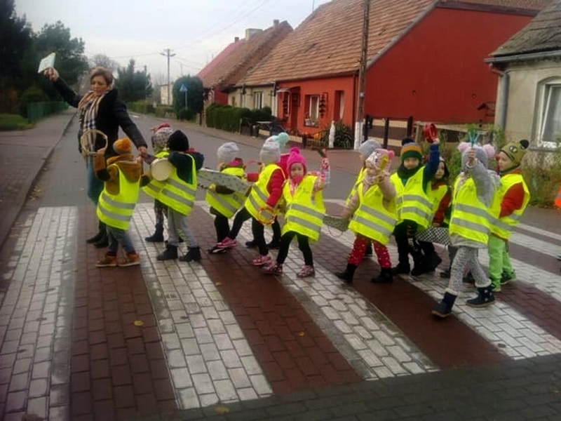 Przedszkolaki z grup „Biedronek” i Pszczółek” wyszły na ulice Karnic, aby uczyć dorosłych. Rozdawały napotkanym mieszkańcom ulotki dotyczące konieczności przewożenia dzieci w fotelikach samochodowych oraz zapinania pasów.