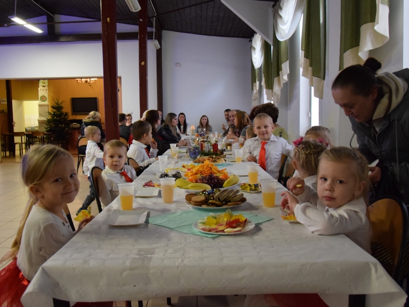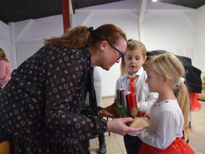 Święta Bożego Narodzenia to wyjątkowy czas, na który co roku czekamy z utęsknieniem. To właśnie z okazji zbliżających się Świąt 17 grudnia 2019 r. dzieci z Punktu Przedszkolnego w Cerkwicy wystąpiły dla wyjątkowych gości, którymi byli przede wszystkim ich rodzice. Świąteczny występ przedszkolaków rozpoczął się wzruszającym tańcem, w którym dzieci wcieliły się w rolę śnieżynek tańczących na wietrze. Mimo dużej tremy wszystko udało się wspaniale. Następnie recytowanymi wierszykami, dźwiękiem dzwonków, angielską piosenką o Mikołaju i kolędą „Przybieżeli do Betlejem” młodzi artyści wprowadzili wszystkich zebranych w świąteczny nastrój. Miłym akcentem tego świątecznego spotkania było obdarowanie gości bożonarodzeniowymi stroikami oraz wspólny poczęstunek, który zwieńczył to wyjątkowe wydarzenie.