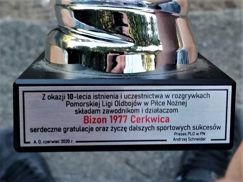 Przed meczem trzeciej kolejki Pomorskiej Ligi Oldbojów w Tychowie drużyna Bizona Cerkwica została uhonorowana przez organizatorów rozgrywek pamiątkowym pucharem z 10-lecia powstania drużyny.