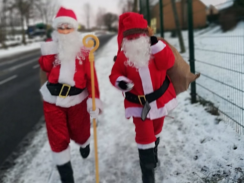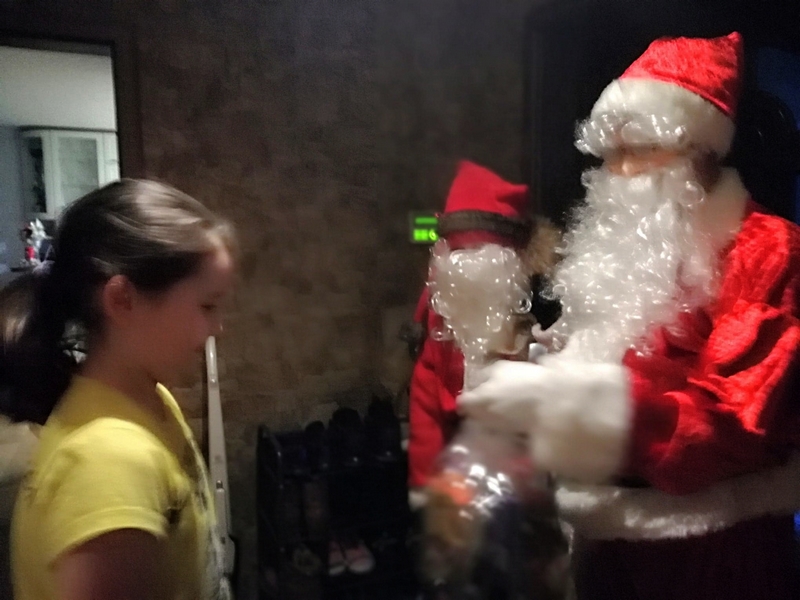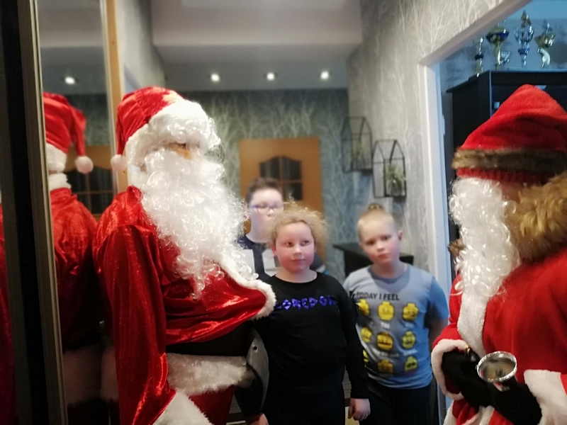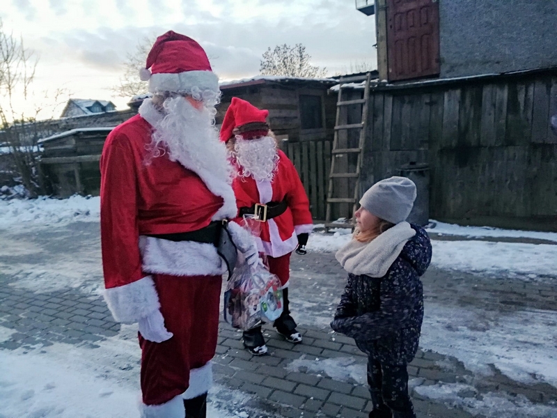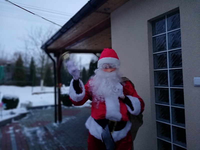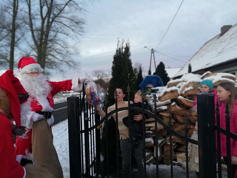 Padający śnieg nie przeszkodził Mikołajowi w dotarciu do dzieci z Sołectwa Skrobotowo. Tym razem było to nawet dwóch Mikołajów.