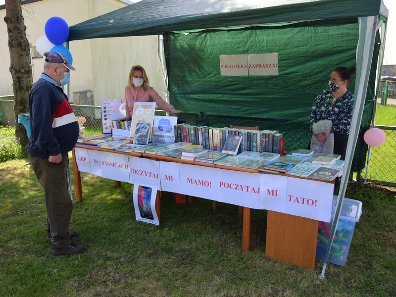 Jesteśmy na półmetku Tygodnia Bibliotek. Podczas kilku dni tegorocznej XVIII edycji pod nazwą „Znajdziesz mnie w bibliotece” w Gminie Karnice działo się wiele. W pierwszym dniu akcji biblioteka „wyszła” do swoich czytelników. Namiot, który rozstawiony został tuż obok Zakładu Gospodarki Komunalnej chętnie odwiedzali mieszkańcy nie tylko Karnic, ale całej gminy. Ciekawe książkowe propozycje z działu nowości oferowane przez Dyrektor GBP Annę Majkoś zachęcały do zapisania się do biblioteki i poznania całego księgozbioru.