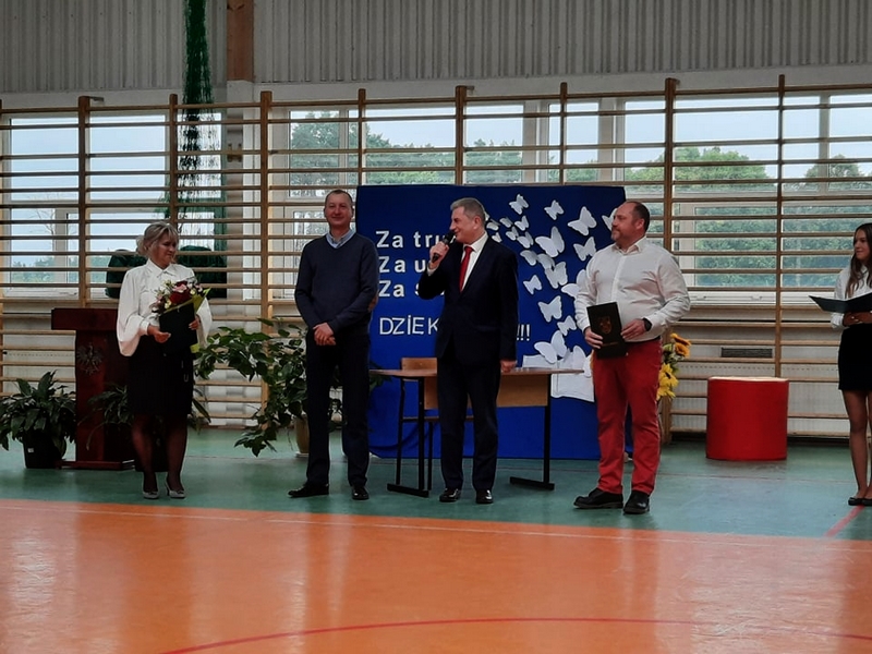 Ten dzień był też doskonałą okazją do wręczenia wszystkim pracownikom szkoły podziękowań i kwiatów, a także przyznania nagród. Specjalną nagrodę z rąk Wójta Gminy Karnice Lecha Puzdrowskiego oraz Zastępcy Przewodniczącego Rady Gminy Dariusza Mikulskiego odebrał Michał Waliszka. Również Dyrektor Szkoły Teresa Szydłowska wyróżniła swoich pracowników za zaangażowanie z jakim wykonują swoje obowiązki. Uczniowie swoim występem udowodnili, że dobry nauczyciel nie tylko uczy i wymaga, ale też przeżywa wraz z dziećmi wiele wspaniałych chwil.