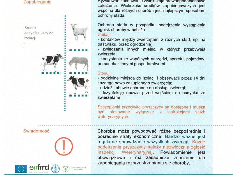 - w razie zauważenia wymienionych objawów choroby należy natychmiast zawiadomić powiatowego lekarza weterynarii celem umożliwienia pobrania próbek w kierunku wykluczenia pryszczycy.