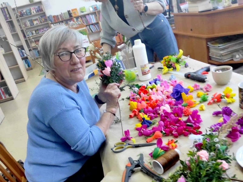 Okres Wielkanocy to wyjątkowy czas przygotowania na Zmartwychwstanie Jezusa Chrystusa, ale także moment, w którym z radością dekorujemy nasze domy i otoczenie, wprowadzając świąteczną atmosferę. W minioną środę w Gminnej Bibliotece Publicznej w Karnicach odbyły się warsztaty, podczas których uczestnicy tworzyli wielkanocne palmy oraz dekoracje. Środowe spotkania nie tylko pozwalają odkrywać i doskonalić techniki rękodzielnicze, ale są również doskonałą okazją do międzypokoleniowej integracji, inspirujących rozmów i budowania lokalnej wspólnoty. Własnoręcznie wykonane ozdoby takie jak barwne palmy, stroiki i inne świąteczne kompozycje każda z uczestniczek zabrała ze sobą do domu, by stały się wyjątkową ozdobą wielkanocnego stołu i niepowtarzalnym elementem świątecznego wystroju.