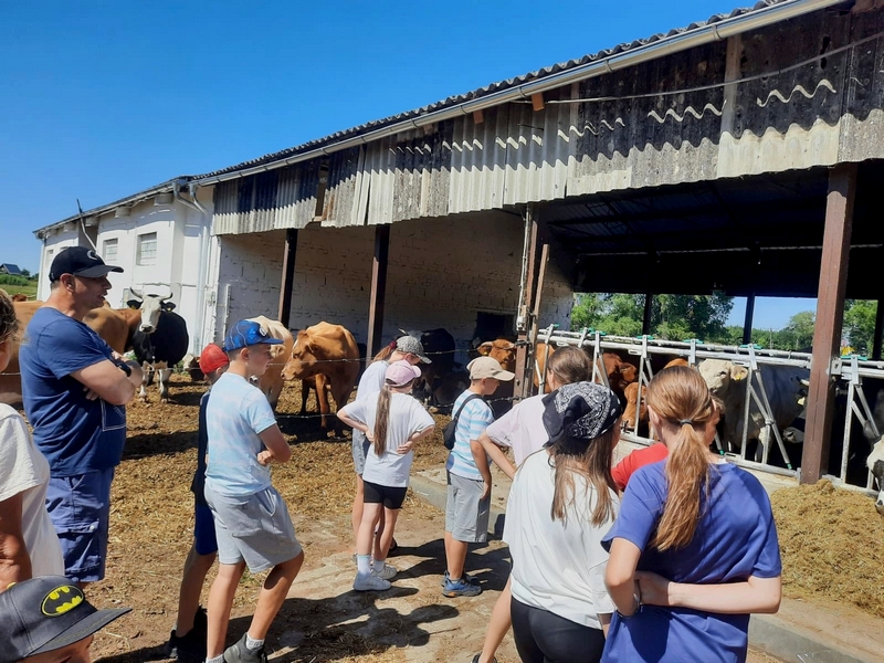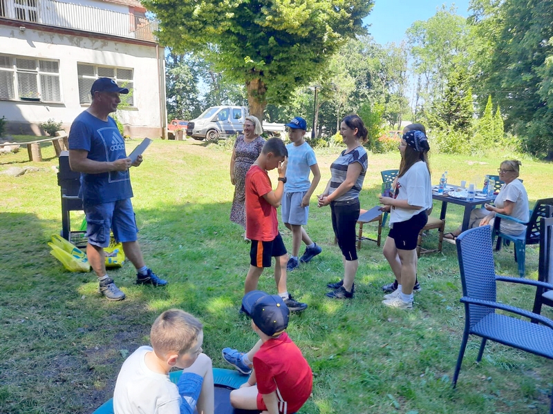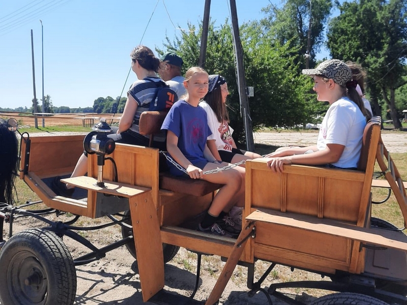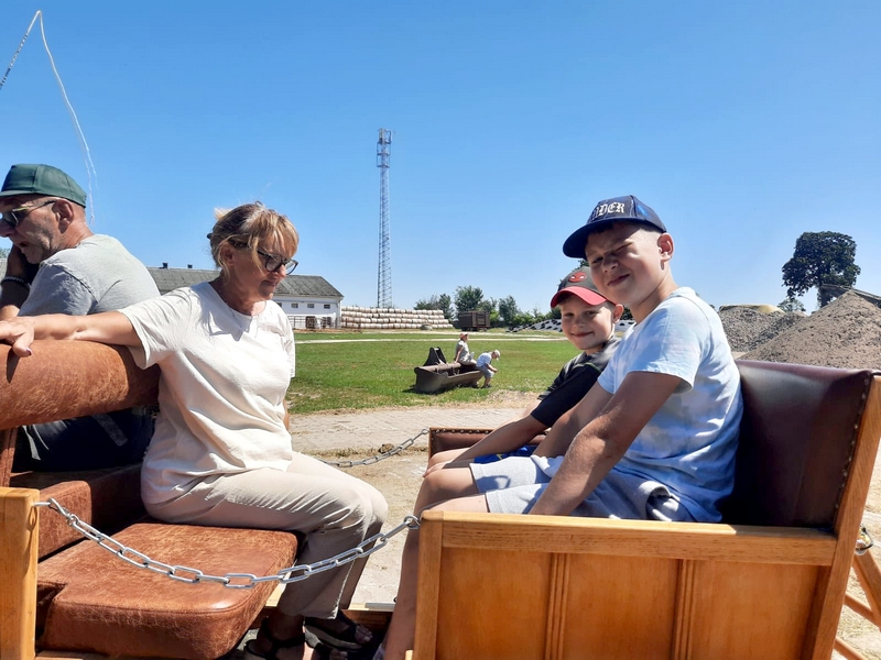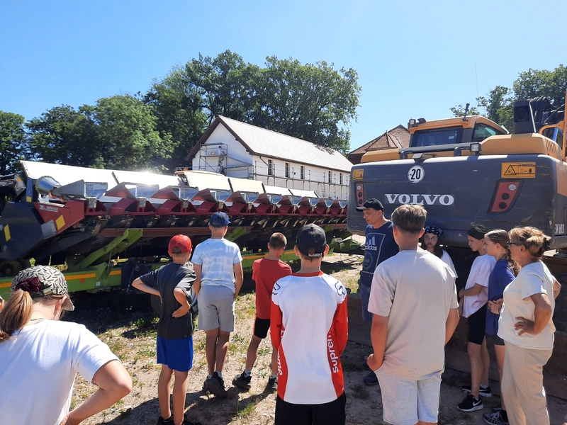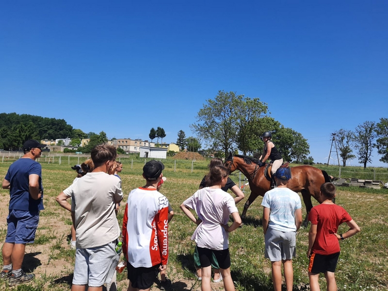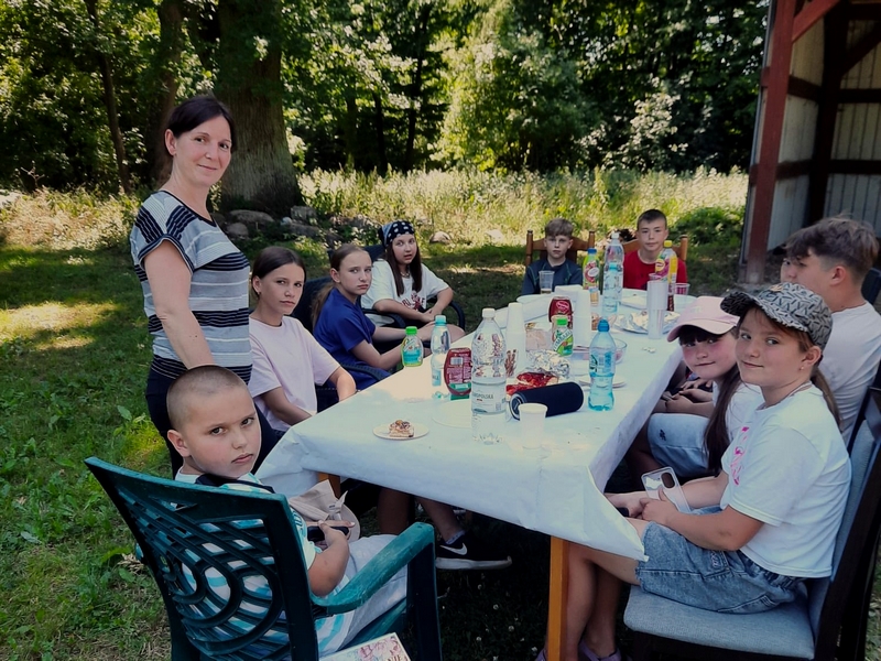 Z okazji rozpoczęcia wakacji wychowawczyni Placówki Wsparcia Dziennego w Paprotnie, pani Mariola Łazarska, zorganizowała dla swoich podopiecznych wyjątkową wycieczkę do nowoczesnego gospodarstwa rolnego PIGPOL w Cerkwicy. Na dzieci czekało mnóstwo atrakcji, a każda chwila tego dnia była przepełniona radością, nauką i niezapomnianymi przygodami. Pierwszym punktem programu było zwiedzanie pałacu, gdzie uczestnicy wycieczki wzięli udział w fascynującej prezentacji na temat zielonej energii. Dzieci dowiedziały się, w jaki sposób gospodarstwo wykorzystuje odnawialne źródła energii takie jak panele fotowoltaiczne czy biogazownie. Zdobyta wiedza została sprawdzona w formie konkursu, w którym młodzi uczestnicy wykazali się dużą spostrzegawczością, a najlepsi zostali nagrodzeni atrakcyjnymi upominkami. Kolejnym etapem była wizyta na terenie gospodarstwa. Dzieci miały okazję z bliska poznać zwierzęta hodowlane – mogły je głaskać, karmić i dowiedzieć się wielu ciekawych faktów o ich codziennym życiu. Ogromne zainteresowanie wzbudził również nowoczesny sprzęt rolniczy. Przejażdżki ciągnikiem, koparką, opryskiwaczem, a nawet bryczką dostarczyły uczestnikom mnóstwo emocji i radości. Wielką frajdą okazała się beztroska zabawa w snopkach siana, która wywołała mnóstwo śmiechu i pozytywnej energii. Po tak intensywnym przedpołudniu przyszedł czas na chwilę odpoczynku i poczęstunek. Na dzieci czekały smakowite potrawy z grilla oraz słodkie przekąski przygotowane przez pracowników gospodarstwa. To był dzień pełen uśmiechu, emocji i niezapomnianych wrażeń. Dzieci wróciły do domu szczęśliwe, pełne entuzjazmu i już z niecierpliwością wypatrują kolejnych wakacyjnych przygód.