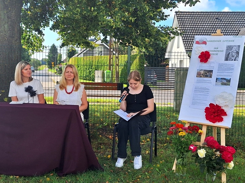 Narodowe Czytanie poezji Jana Kochanowskiego przed budynkiem karnickiej szkoły stało się wyjątkowym spotkaniem z literaturą, które połączyło uczniów, nauczycieli i pracowników GBP. Utwory Jana Kochanowskiego zabrzmiały na nowo, przypominając, że mimo upływu wieków nadal potrafią inspirować i skłaniać do refleksji.