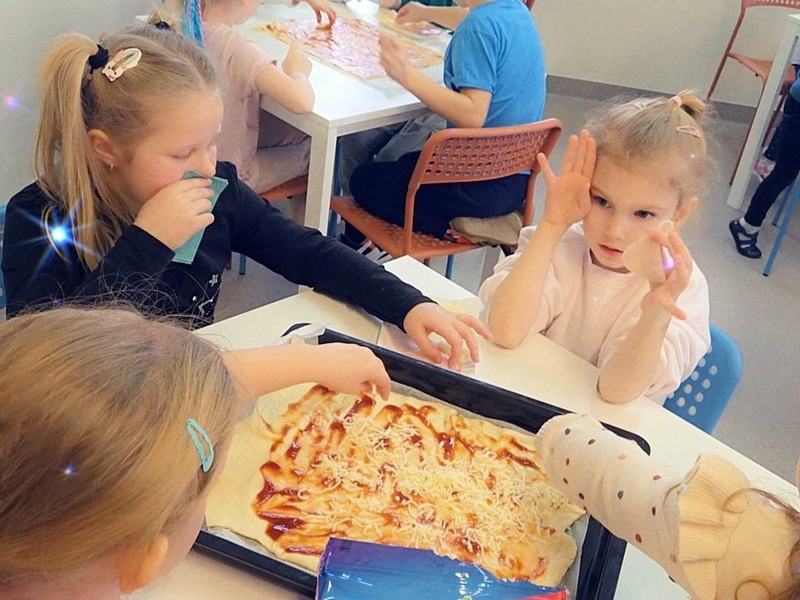 Dziś w Przedszkolu w Karnicach obchodzono niezwykle apetyczne święto jaki jest Dzień Pizzy. To wyjątkowe wydarzenie stało się doskonałą okazją nie tylko do skosztowania tego uwielbianego przez wszystkich przysmaku, lecz także do poznania przez dzieci różnych rodzajów pizzy oraz składników, z których powstaje. Najwięcej radości sprawiła przedszkolakom możliwość samodzielnego przygotowania własnej pizzy. Mali kucharze z ogromnym entuzjazmem i kreatywnością komponowali swoje kulinarne dzieła, dobierając ulubione dodatki. Kiedy pizze trafiły do pieca, dzieci z niecierpliwością czekały na możliwość spróbowania efektów swojej pracy. Degustacja okazała się prawdziwą ucztą. Radość i satysfakcja były ogromne. Na zakończenie tego smakowitego dnia przedszkolaki wykonały prace plastyczne, których główną bohaterką była oczywiście pizza. Był to dzień pełen radości, nowych doświadczeń i doskonałej zabawy.