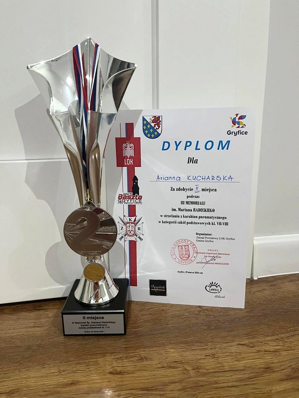 Z dumą informujemy, że Arianna wystrzelała drugie miejsce w kategorii szkół podstawowych klas I–VI w konkurencji karabinu pneumatycznego, prezentując wysoki poziom umiejętności, koncentracji i sportowej determinacji. Sukces Arianny jest dowodem jej talentu oraz systematycznej pracy.