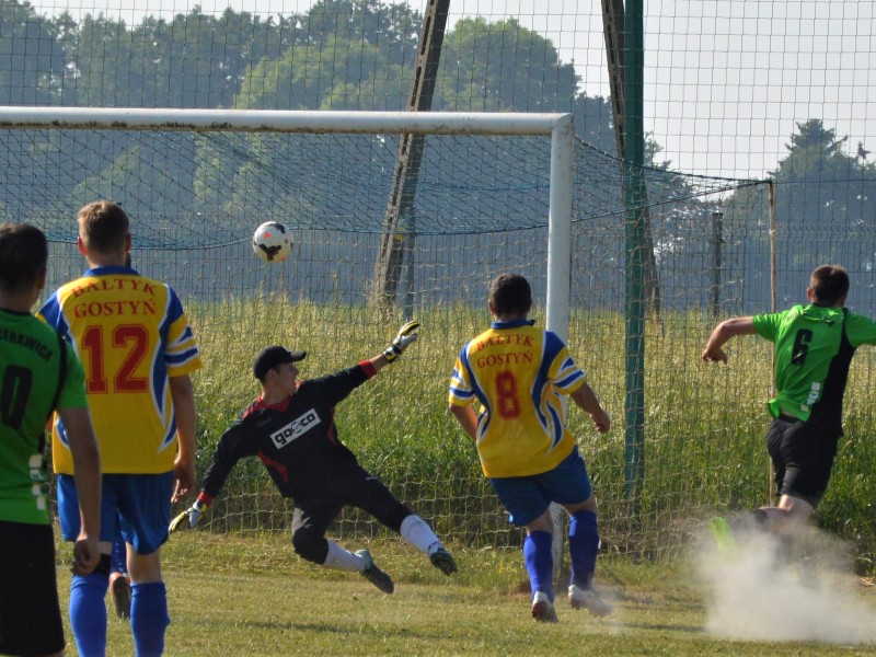 Seniorzy Bizona Cerkwica rozegrali mecz wyjazdowy z Bałtykiem Gostyń. Mecz lepiej rozpoczął się dla gospodarzy. Piłkarze Bałtyku rozpoczęli spotkanie grając bardzo ofensywnie, a jednocześnie agresywnie. Dało to efekt w postaci bramki i Bałtyk objął prowadzenie w tym meczu. Z czasem gra wyrównała się, a w 28 minucie po rzucie wolnym wykonanym przez Mariusza Wlaźlaka, Adrian Płotała precyzyjnym strzałem doprowadził do wyrównania. Na przerwę piłkarze Bizona schodzili prowadząc 2:1 dzięki trafieniu Marcina Jaroszewicza, który po stałym fragmencie gry głową skierował piłkę do bramki.