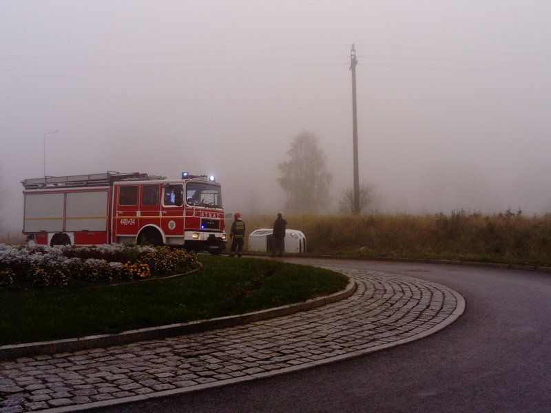 Dziś o godz.8:40 strażacy OSP Cerkwica zostali zadysponowani do zdarzenia drogowego na rondzie między Cerkwicą a Mojszewem. Kierowca samochodu osobowego marki Fiat ze zbyt dużą prędkością wjechał na rondo od strony Paprotna, po czym stracił panowanie nad pojazdem i wpadł do rowu. Trudne warunki pogodowe, czyli padający deszcz oraz gęsta mgła, a także zbyt duża prędkość były przyczyną wypadku. Kierowca w szoku, ale o własnych siłach opuścił pojazd. Na miejscu jako pierwsi pojawili się strażacy, których zadaniem było udzielenie pomocy przedmedycznej, zabezpieczenie miejsca zdarzenia oraz kierowanie ruchem, który w tym czasie był natężony. Warunki na drogach z powodu gęstej mgły są trudne. Apelujemy do wszystkich kierowców o rozwagę i zdjęcie nogi z gazu. Pamiętajmy, że wsiadając za kierownicę jesteśmy odpowiedzialni nie tylko za własne życie, ale także życie i zdrowie innych uczestników drogi.