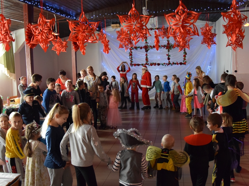 W czwartkowe popołudnie dzieci z punktu przedszkolnego, oddziału „0” i klas I-IV Szkoły Podstawowej w Cerkwicy odwiedziły świetlicę wiejską, by wspólnie bawić się i spotkać z Mikołajem. To był prawdziwy bal, w którym udział brały księżniczki i pszczółki, ale również czerwony kapturek, indianin czy ninja. Zarówno uczniowie jak i ich wychowawcy z dużym entuzjazmem przywitali gościa z dalekiej Laponii, który po obdarowaniu dzieci prezentami bawił się i tańczył razem z nimi. Oprawę muzyczną i atrakcyjne konkursy zapewnił Krzysztof Kolanek. Stary niedźwiedź mocno śpi, przekazywanie pluszowego misia i znikające krzesła to tylko niektóre z przygotowanych przez Krzysztofa zabaw. Również do pociągu jadącego z daleka z chęcią przyłączały się uśmiechnięte „wagoniki”. Dopełnieniem tej wspaniałej zabawy z Mikołajem był przygotowany przez rodziców poczęstunek.