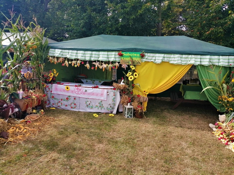 Stoisko Sołectwa Czaplin Mały przyciągało dekoracją, którą stanowiły warzywa, owoce i kwiaty. Na stoisku można było spróbować m.in. ciasta z gruszką, za którą Sołectwo otrzymało I nagrodę w konkursie na najsmaczniejsze ciasto.